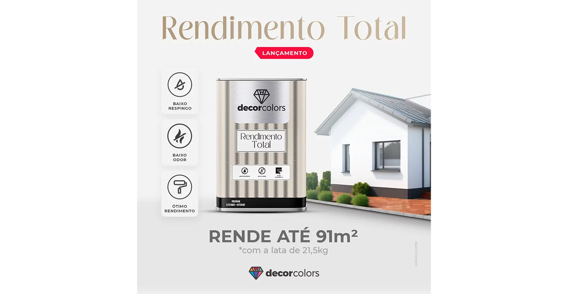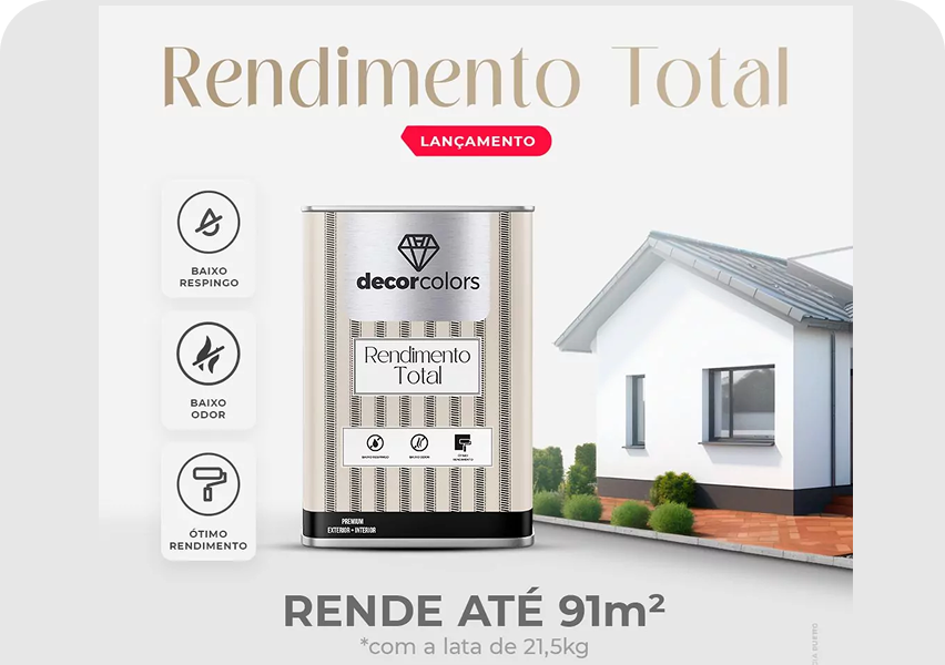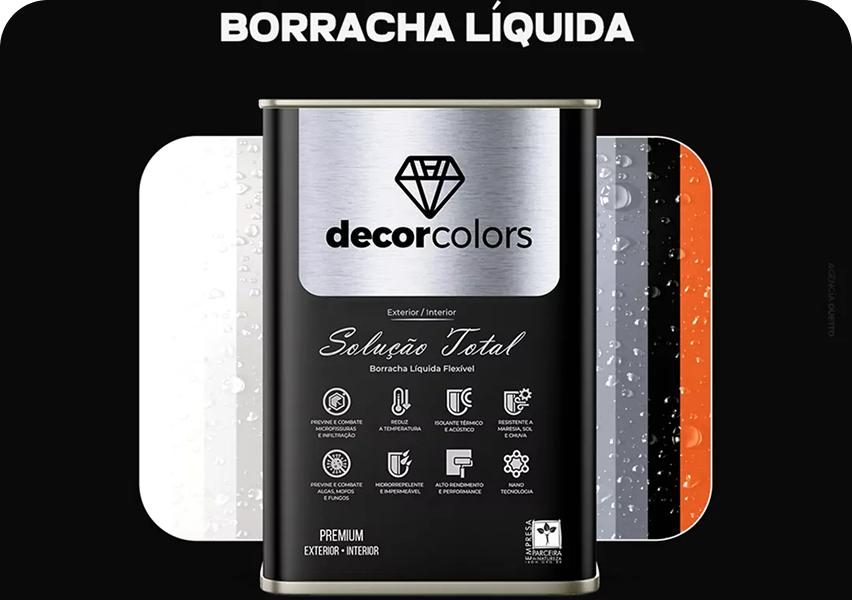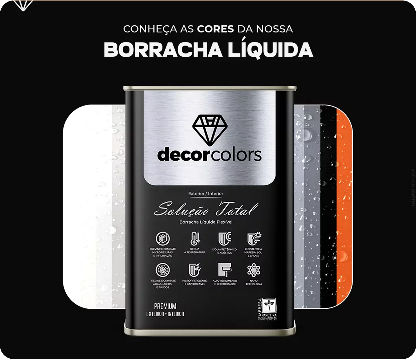 A Decor Collors oferece uma linha completa de acabamentos premium, incluindo Cimento Queimado Diamantado, Borracha Líquida, Tinta Premium Rendimento Total, e tintas multi-limpáveis, entre outros produtos exclusivos.